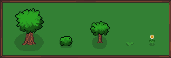 In the free version, you have a tree in two variations; a small bush; a flower; and a bit of grass.